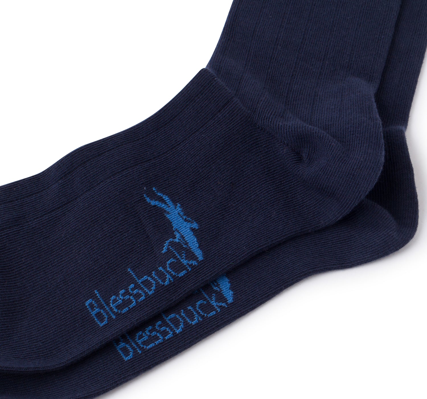 - Calcetines unisex color navy de caña media o alta y de algodón peinado (mejor calidad que el algodón convencional).