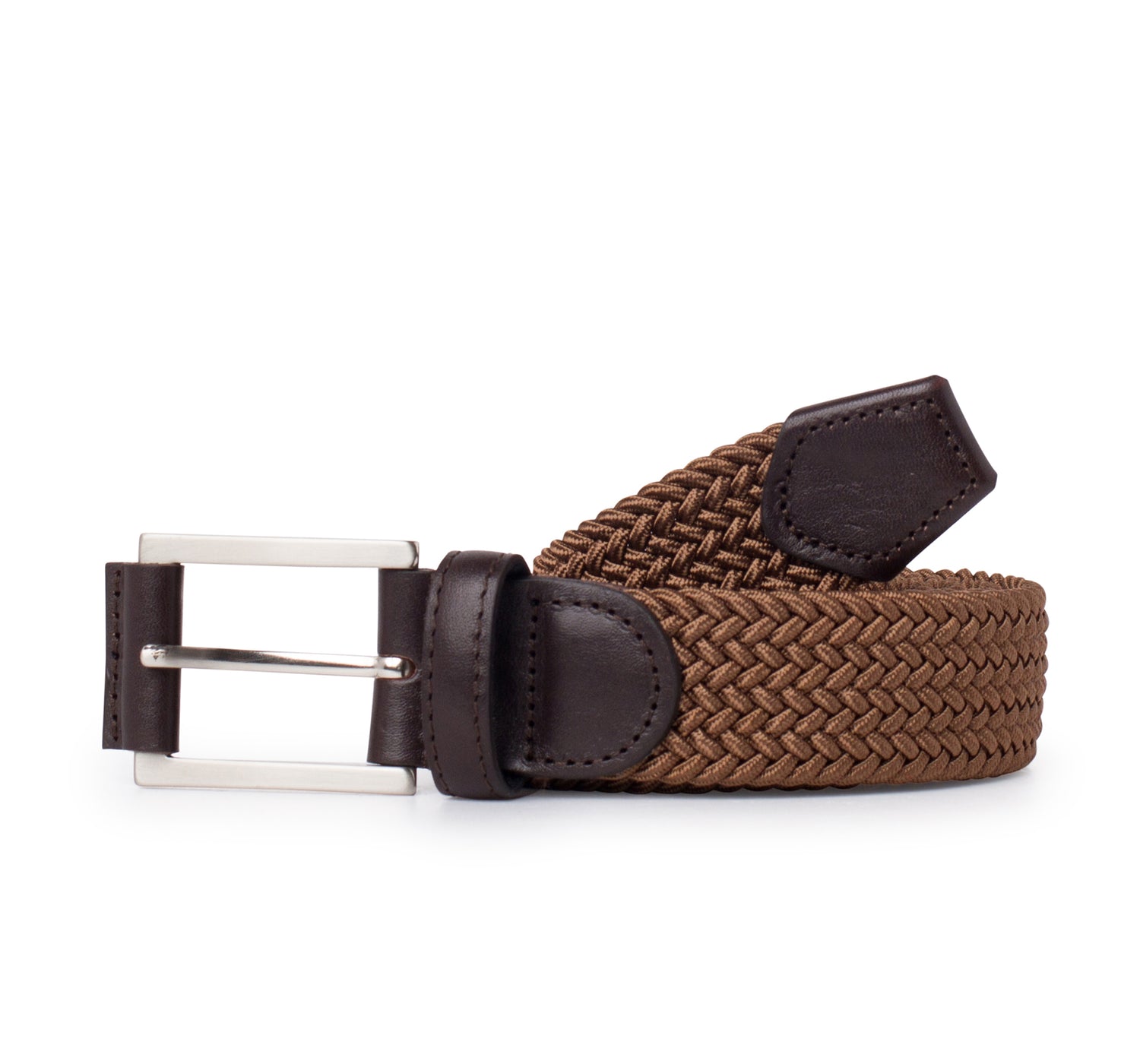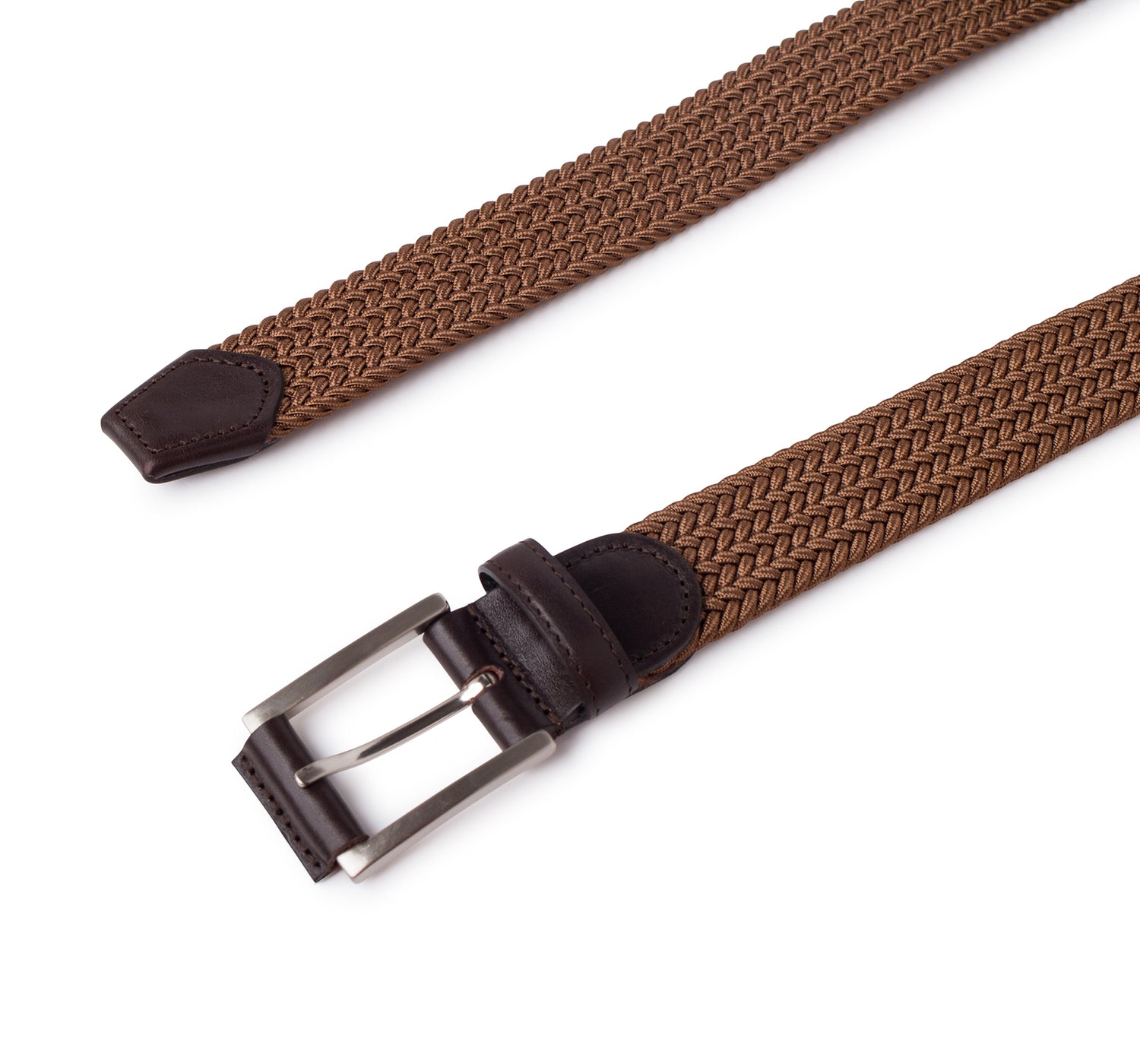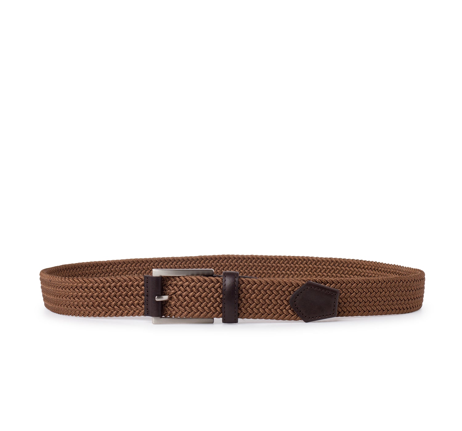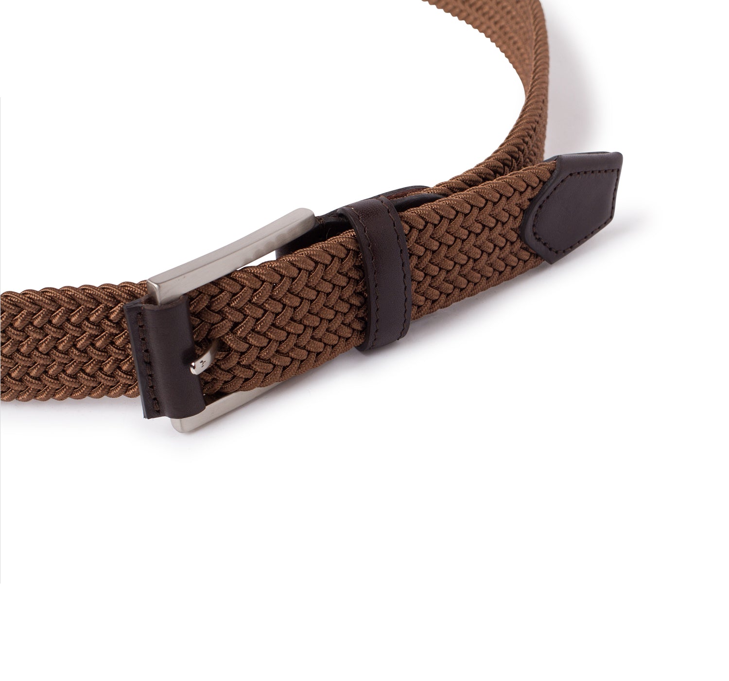 • Cinturón elástico trenzado con puntera de piel.
