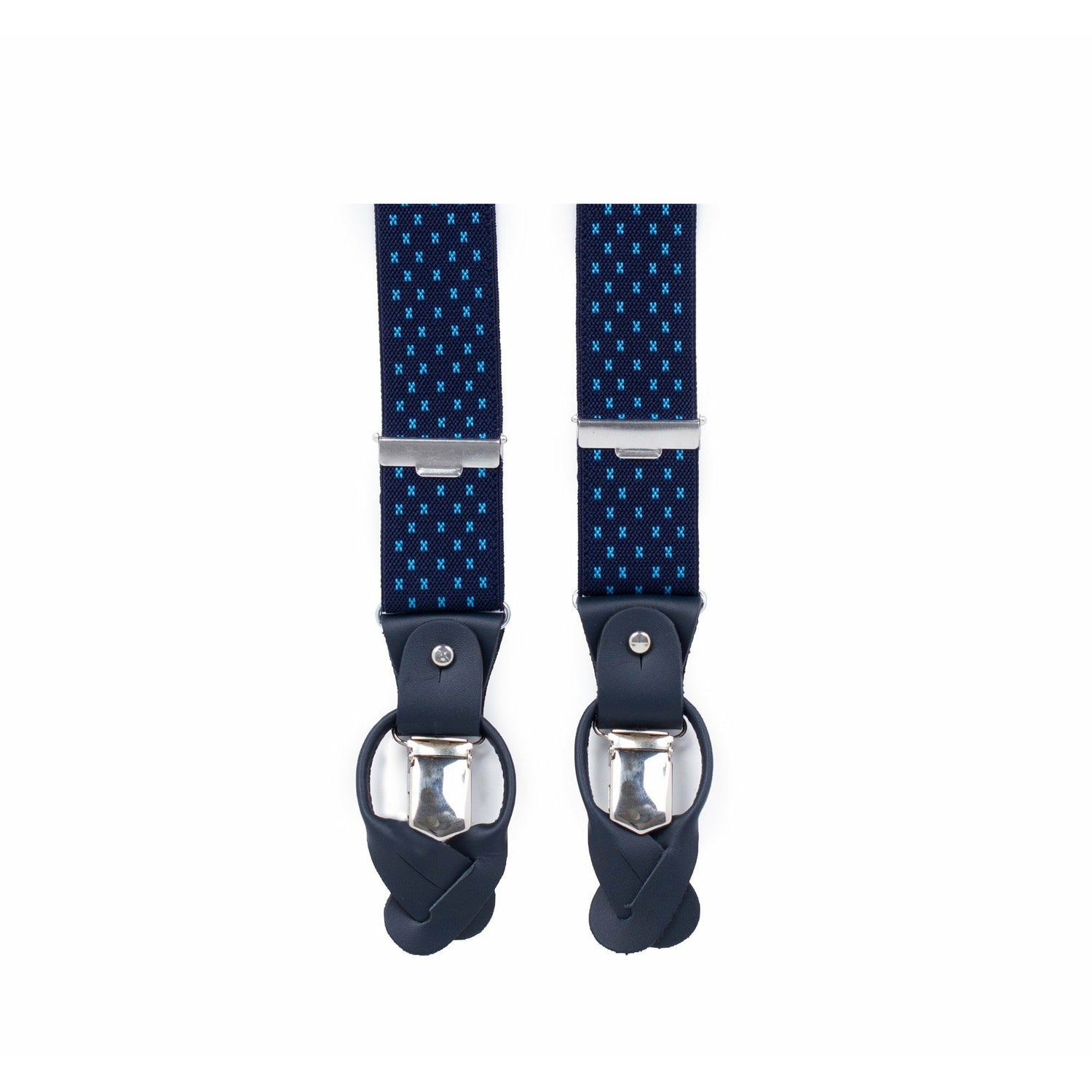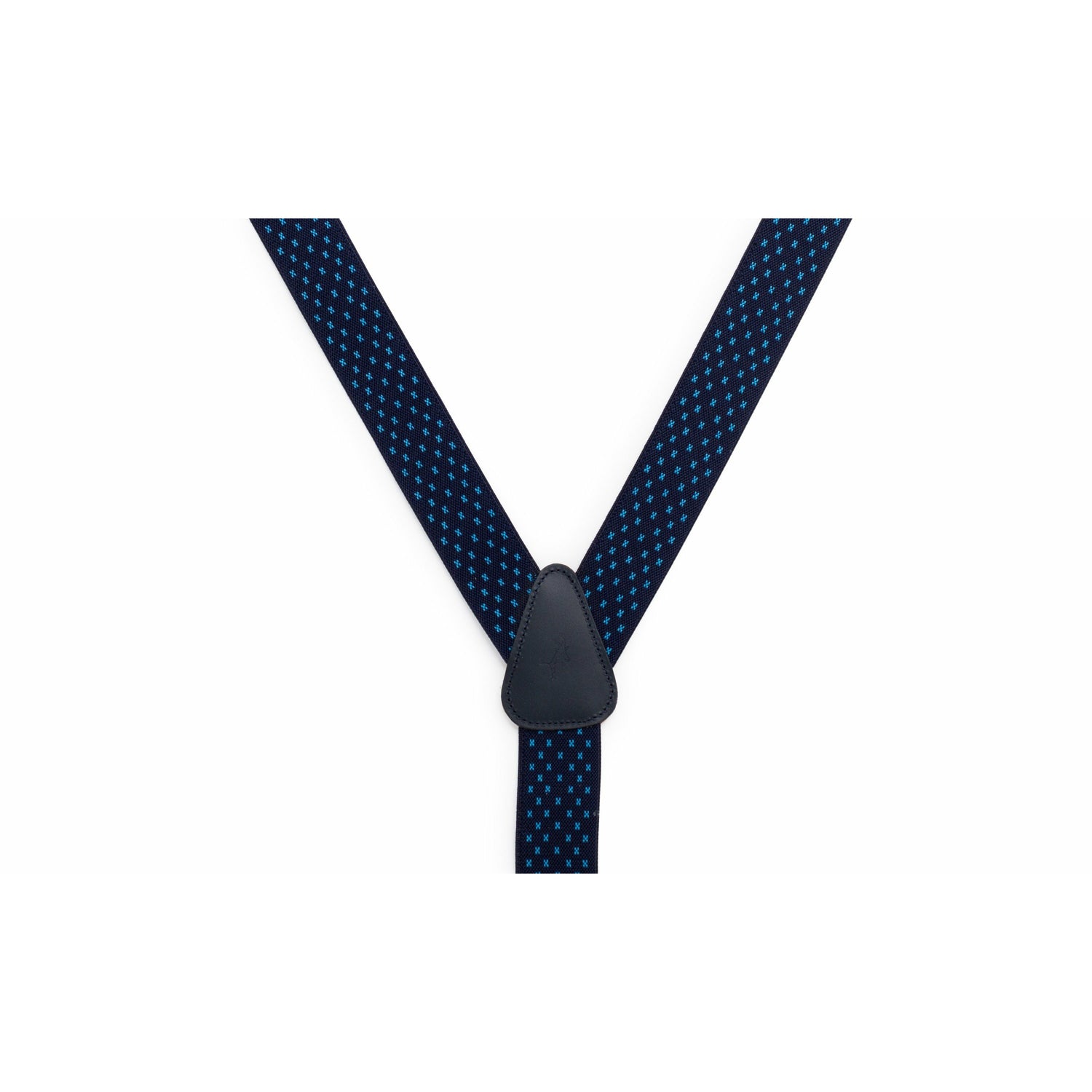- Tirantes elásticos color azul marino con cruces azul claro.
