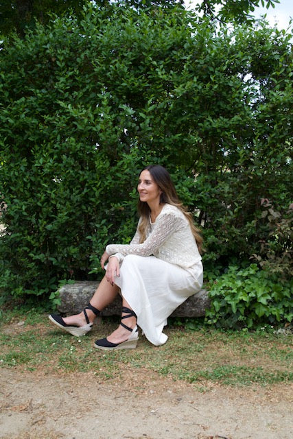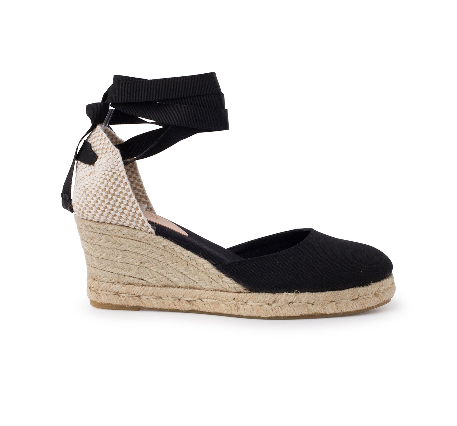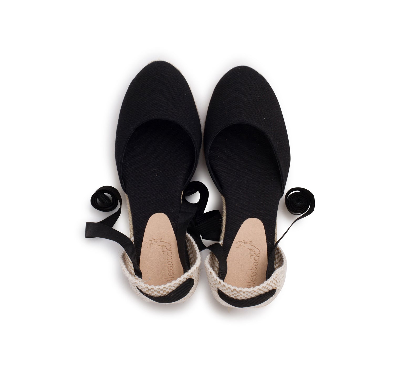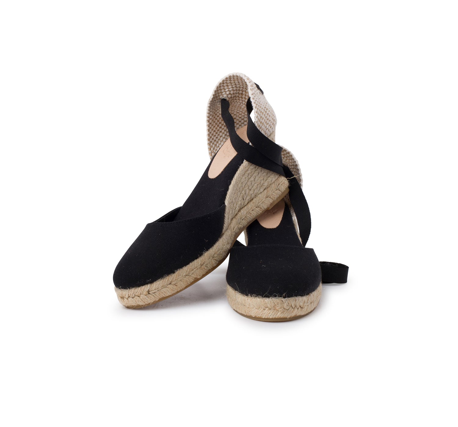 - La estructura de la cuña, elaborada en lona de algodón, con talonera en tejido trenzado y cierre al tono con lazo al tobillo, hacen que Zanzíbar sea todo un clásico: elegante y cómodo